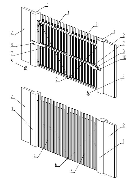 Специальная модификация металлических профилей позволяет создать калитку с любым принципом установки и управления. Накладной монтаж предполагает открытие створок внутрь двора. Встроенный принцип установки предусматривает открытие в разных направлениях. В заводскую комплектацию калитки включены: